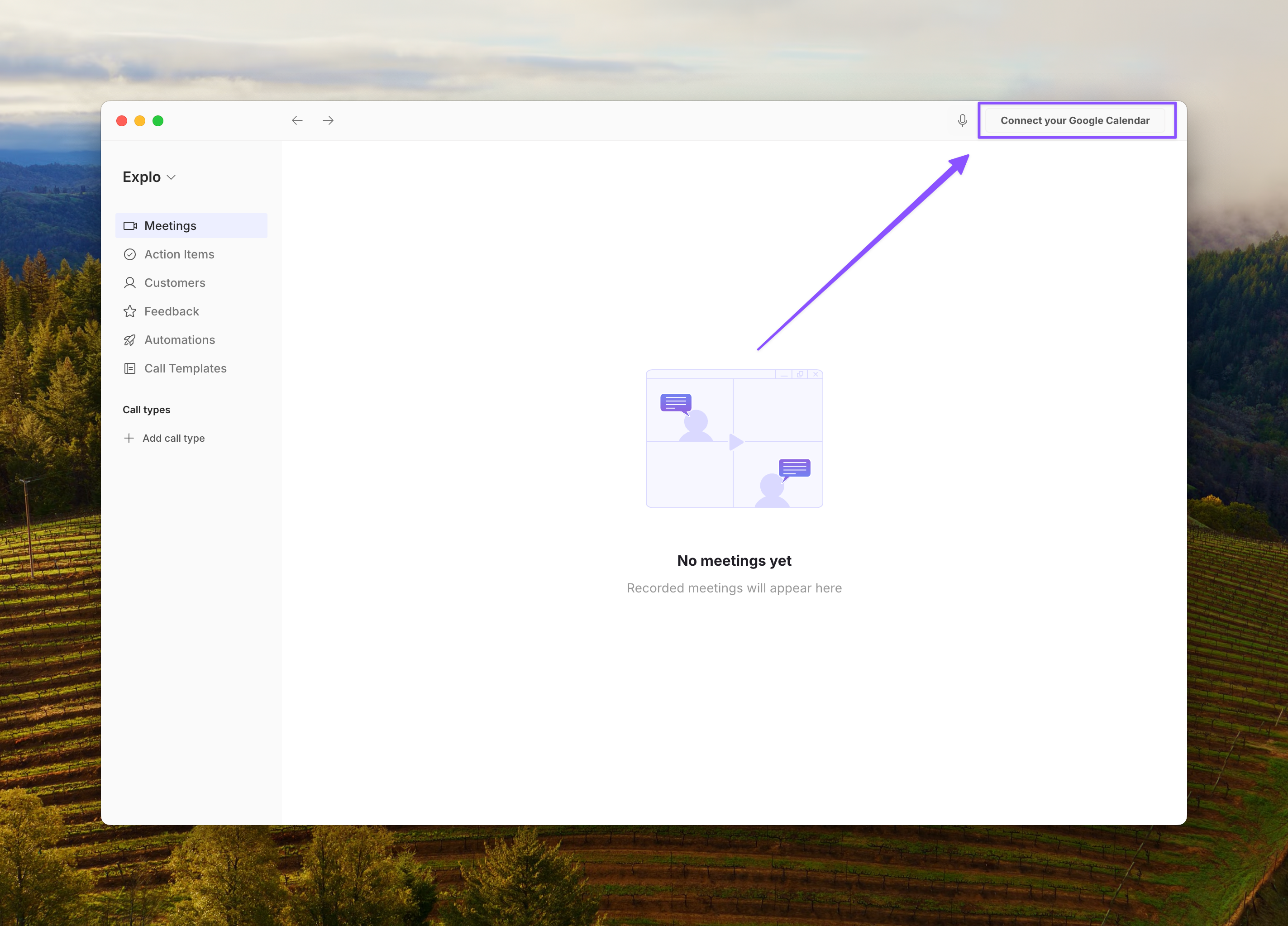 Click on the top right to connect your calendar.